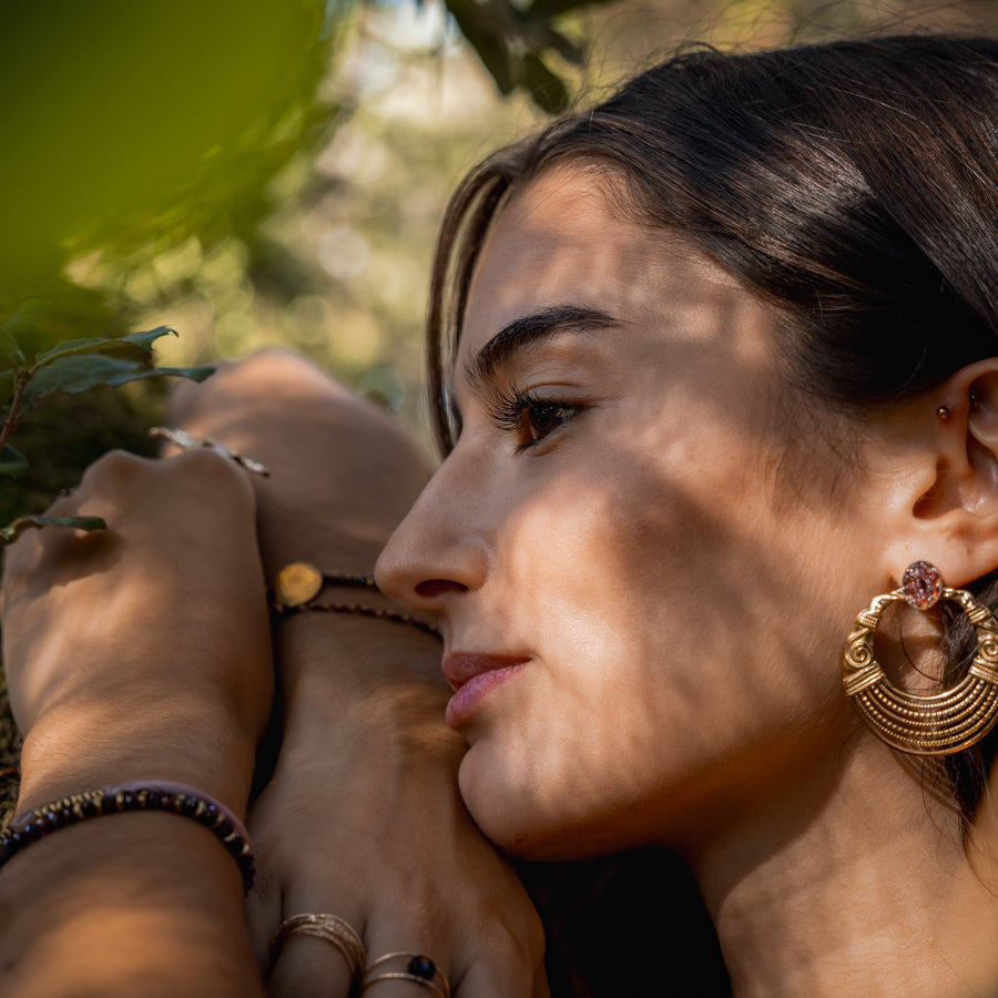 Des boucles d’oreilles solaires et puissantes — la rencontre du doré antique et de la pierre mystique ✨