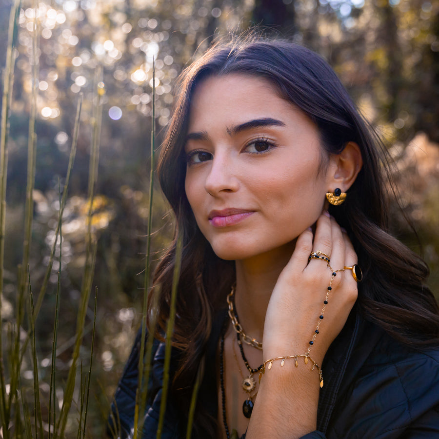 À la fois modernes et intemporelles, ces boucles incarnent parfaitement l’esprit Huna : un mélange de lumière, de force et de féminité. Elles subliment toutes les tenues, du look quotidien au style plus habillé, avec une touche solaire et élégante.