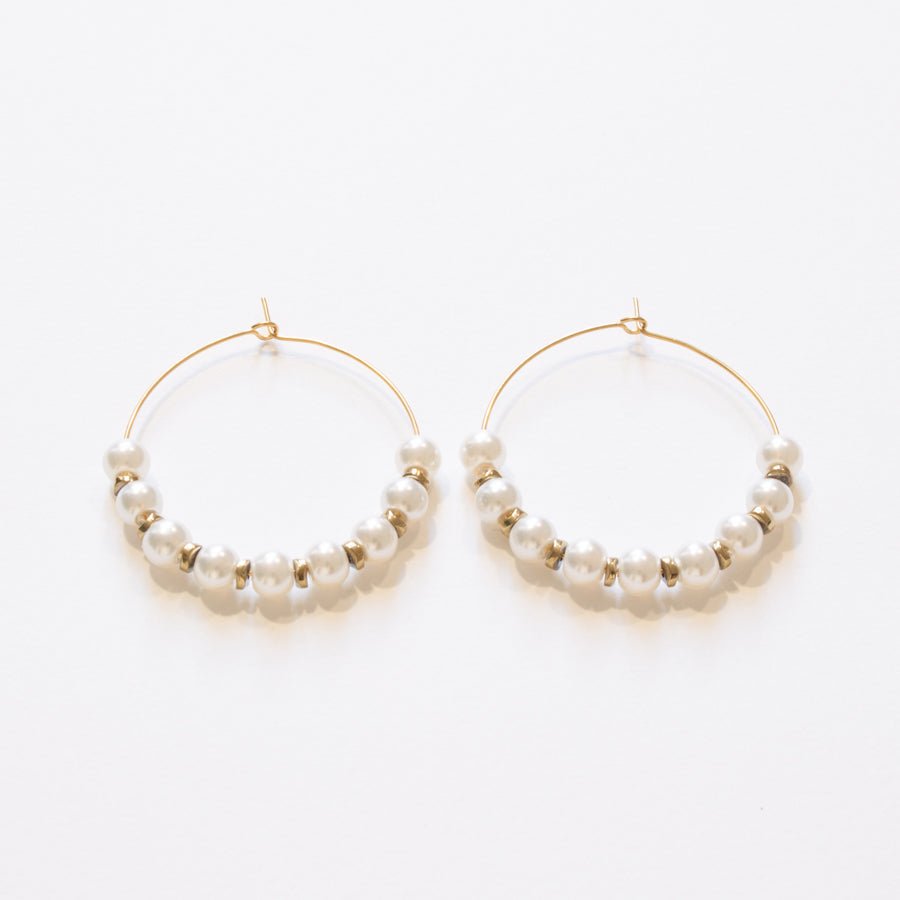 Créoles perles blanches et dorées